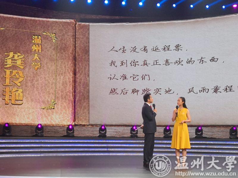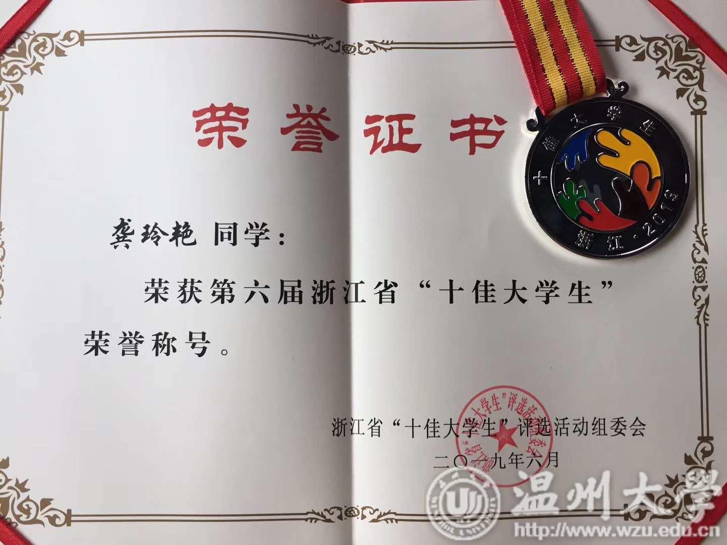 6月29日, “最美青春”第六届浙江省“十佳大学生”颁奖典礼在浙江广电集团演播厅隆重举行。我院机械工程(国际化)专业2015级学生龚玲艳同学经过激烈的角逐,在本次省“十佳大学生”评选中脱颖而出,被评为第六届浙江省“十佳大学生”。这是我校学子首次获得省“十佳大学生”的殊荣,龚玲艳同学为我院赢得了荣誉,在校园中树立了青春好榜样,传递了浓浓正能量。