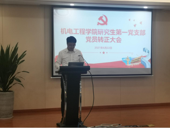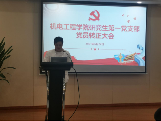 2021年6月22日下午,我院研究生第一党支部于6B309召开预备党员转正大会。本次大会主要讨论了陈宗汪、孙国锋、蒋志航三位同志按期转为中共正式党员的问题。会议由研究生第一党支部书记姚旭凯主持,支部内16名正式党员与8预备党员参加了此次大会,符合规定人数的4/5。此外,支部入党积极分子也参与了本次大会。