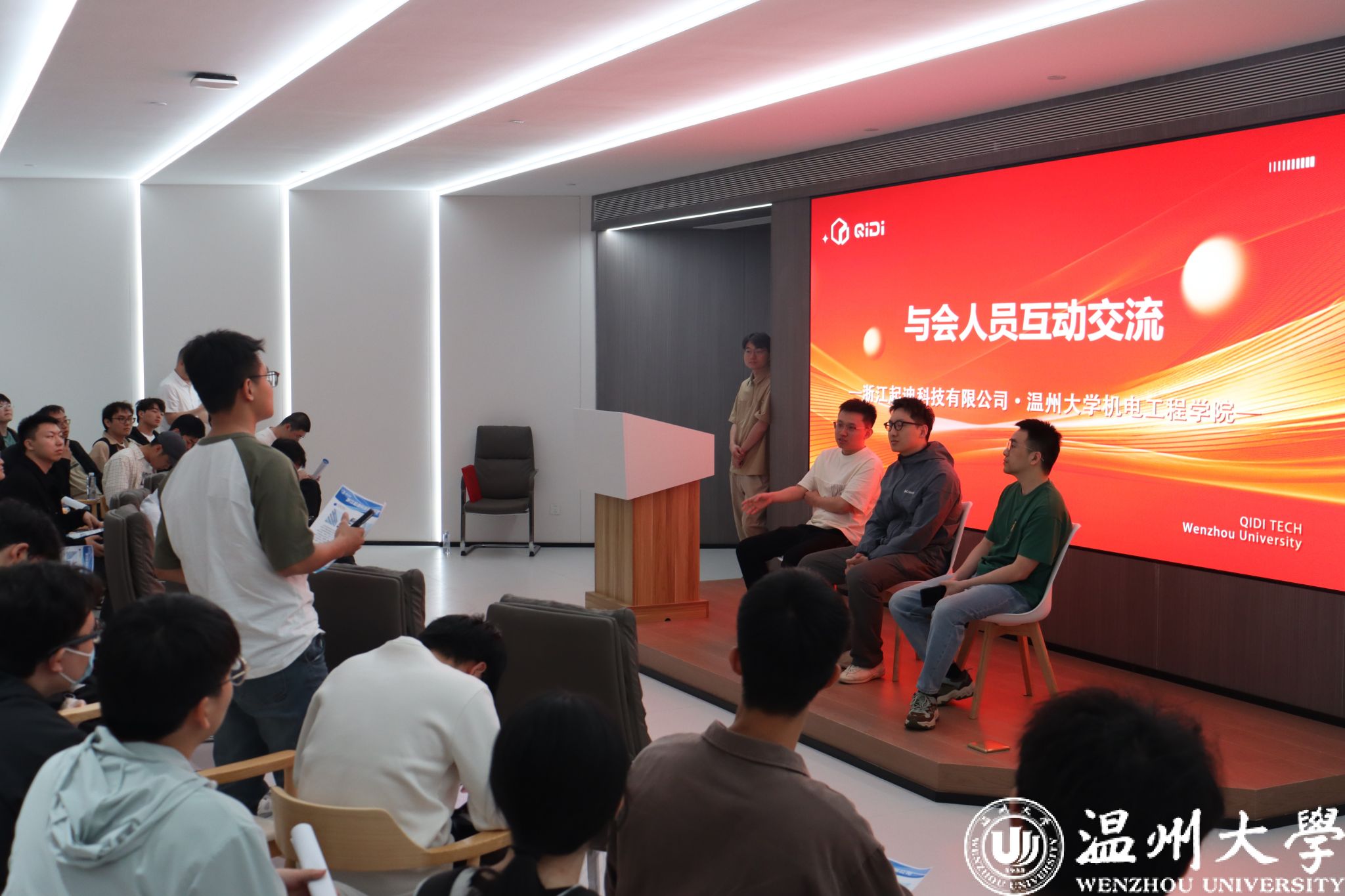 在随后的交流会上,朱德华副院长从专业设置、人才培养、就业趋势三方面系统介绍了机电工程学院的发展现状。他提到,学院近年来紧密对接区域产业需求,新增智能制造、数字化设计等前沿方向,并依托瑞安研究生院深化产研结合,“我们希望通过校企联动,让学生‘所学即所用’,成为企业抢手的实战型人才”。