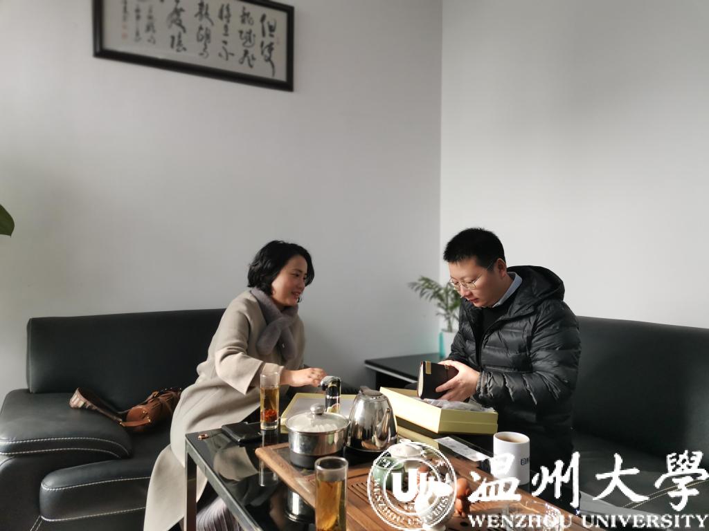 19号,我院党委副书记黄玮一行赴瓯海金融综合服务区走访看望校友刘向前。走访期间,黄书记详细介绍了我校与学院最新的发展状况,诚挚邀请校友多回母校,并推荐了系列校友活动。她对刘向前校友积极参与学院校友会工作表示了衷心的感谢以及新年的祝福。