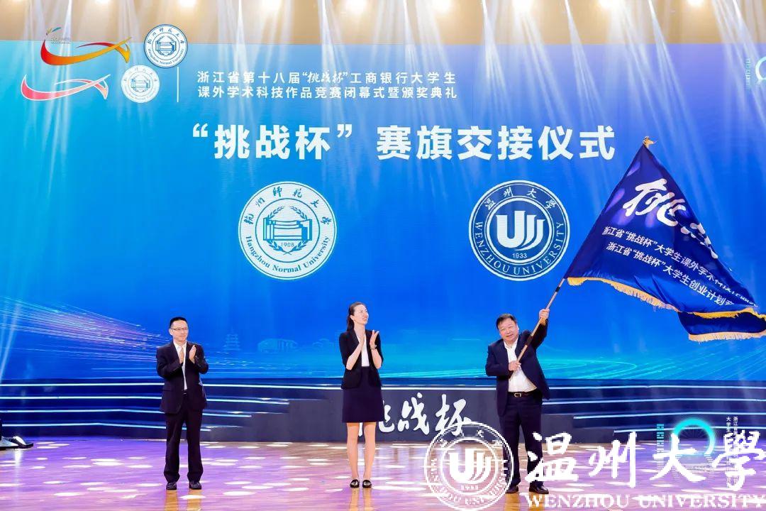 5月21日下午,浙江省第十八届“挑战杯”大学生课外学术科技作品竞赛闭幕。388vip太阳集团12支入围决赛团队经过激烈角逐,勇夺8金,学校再获“优秀组织奖”。其中,机电工程学院2支队伍荣获金奖。校长赵敏出席闭幕式并接过“挑战杯”赛旗,标志着388vip太阳集团将承办2024年浙江省第十四届“挑战杯”大学生创业计划竞赛。