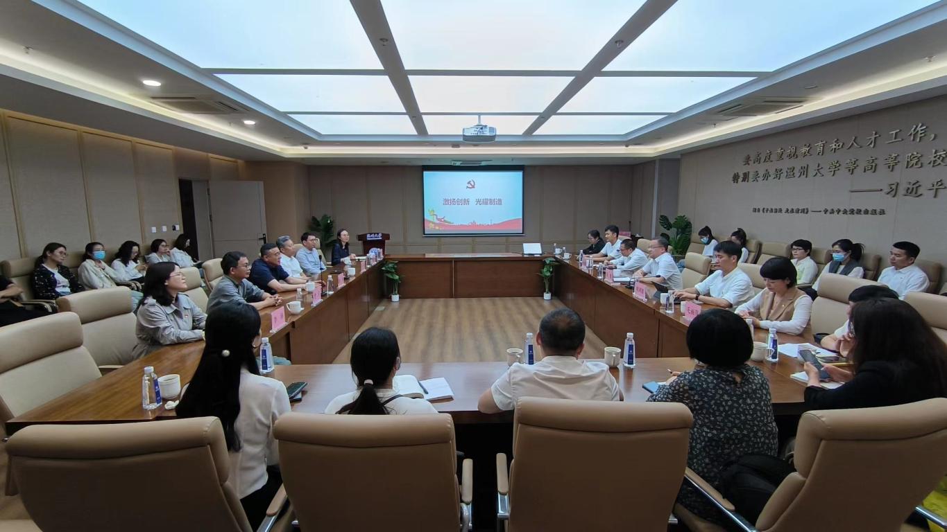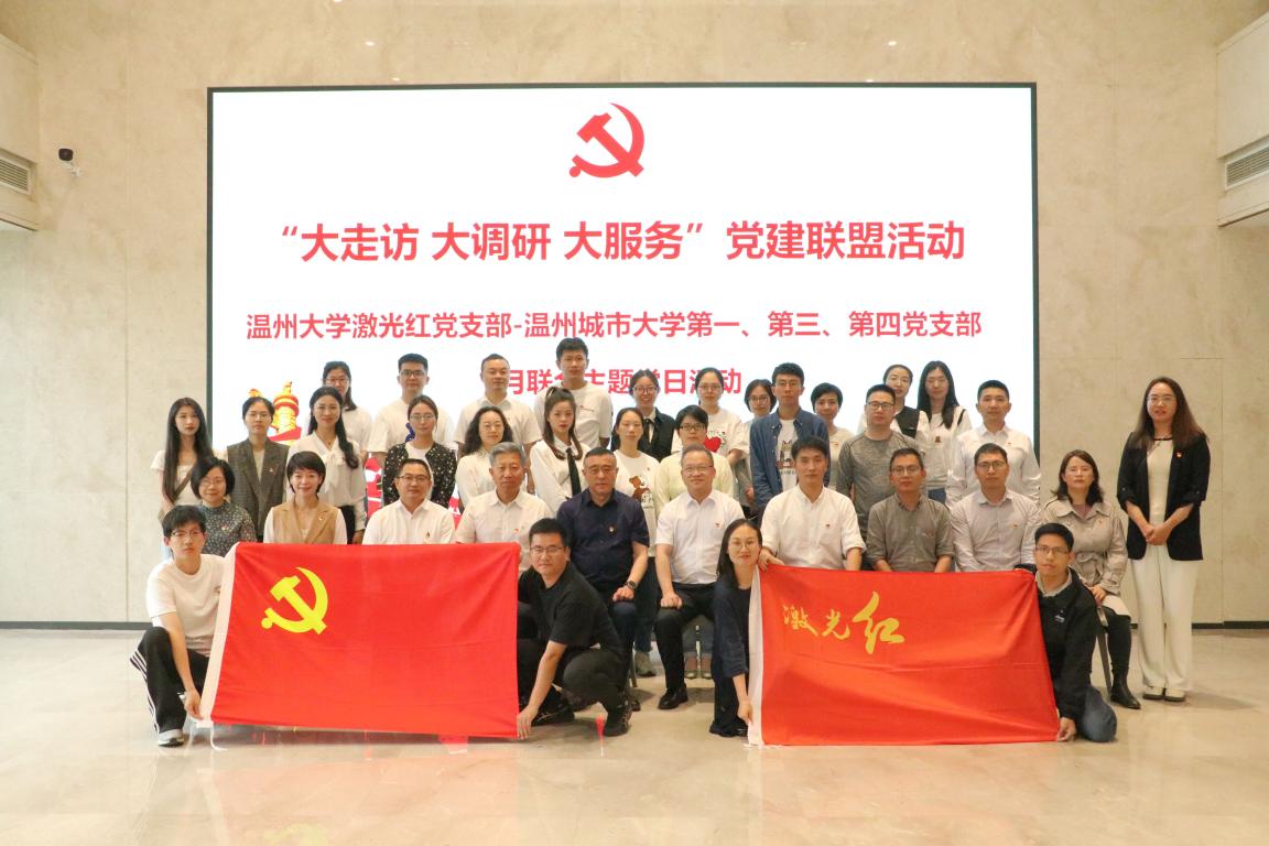 为深入学习贯彻党的二十大精神,不断推动党建工作高质量发展,近日,温州城市大学第一、三、四三个党支部由温州城市大学党委书记伍挺带领,莅临388vip太阳集团激光基地,与388vip太阳集团机电工程学院激光红党支部开展党建联盟“大走访、大调研、大服务”联合主题党日活动,基地主任薛伟教授、激光红党支部书记马光教授等热情接待并出席座谈。