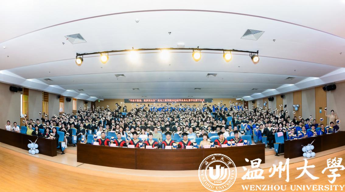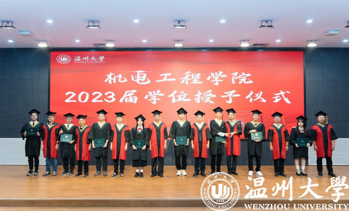 伴随着激昂的旋律,机电工程学院学术委员会老师们上台为毕业生们拨穗并颁发学位证书,学士帽的流苏从右边拨到左边,意味着稻穗成熟,学子们学有所成。