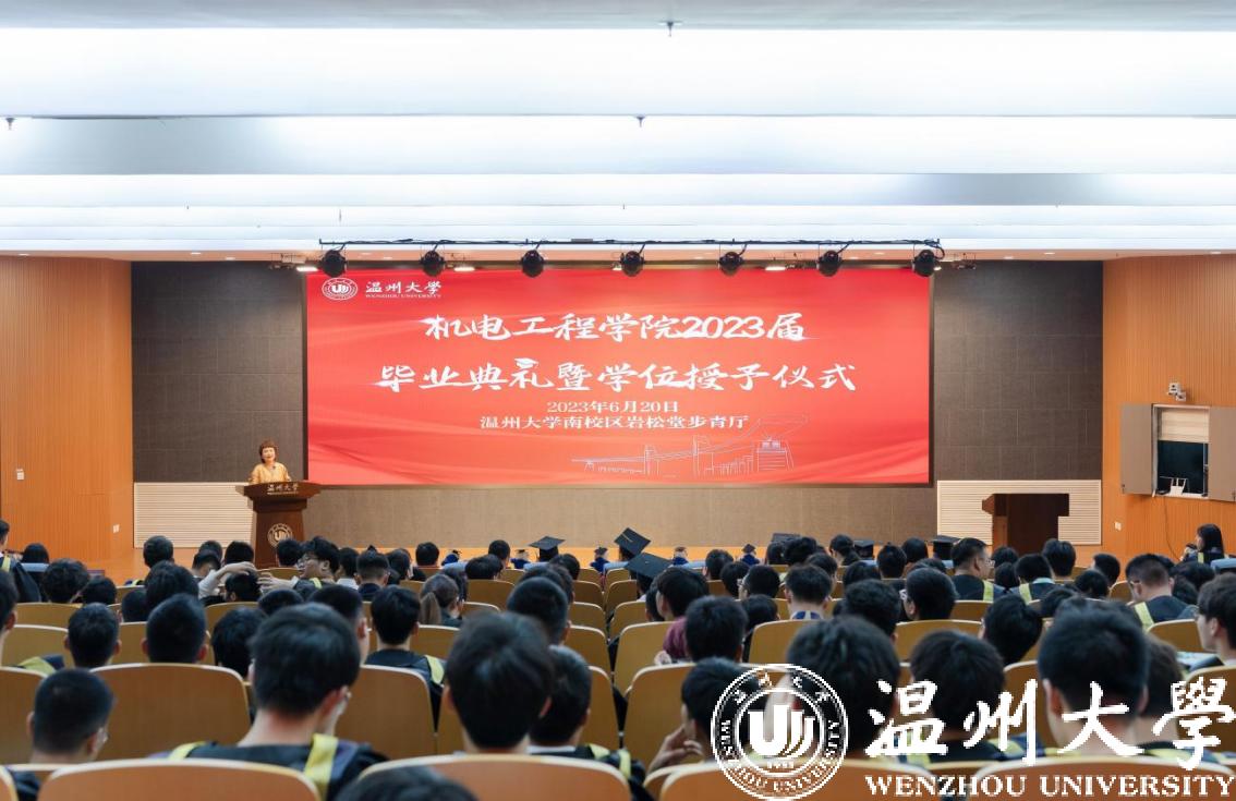 本次典礼在庄严的国歌中拉开帷幕,向院长饱含深情向468名毕业生表达了热烈的祝贺和真挚的祝福,向为学生成长成才默默耕耘、无私奉献的师长、家长、亲朋致以崇高的敬意和感谢。向院长向即将迈向新征程的毕业生提出了三点希望:第一是希望同学们扎根现实;第二是希望同学们勇敢追梦;第三是希望同学们强健身心。最后向院长表示今天是同学们学海作舟的青春盛典,既承载了同学们追梦机电的光阴,更吹响了同学们奔赴未来的号角,希望同学们不负韶华,做一个又红又专的社会主义建设者。