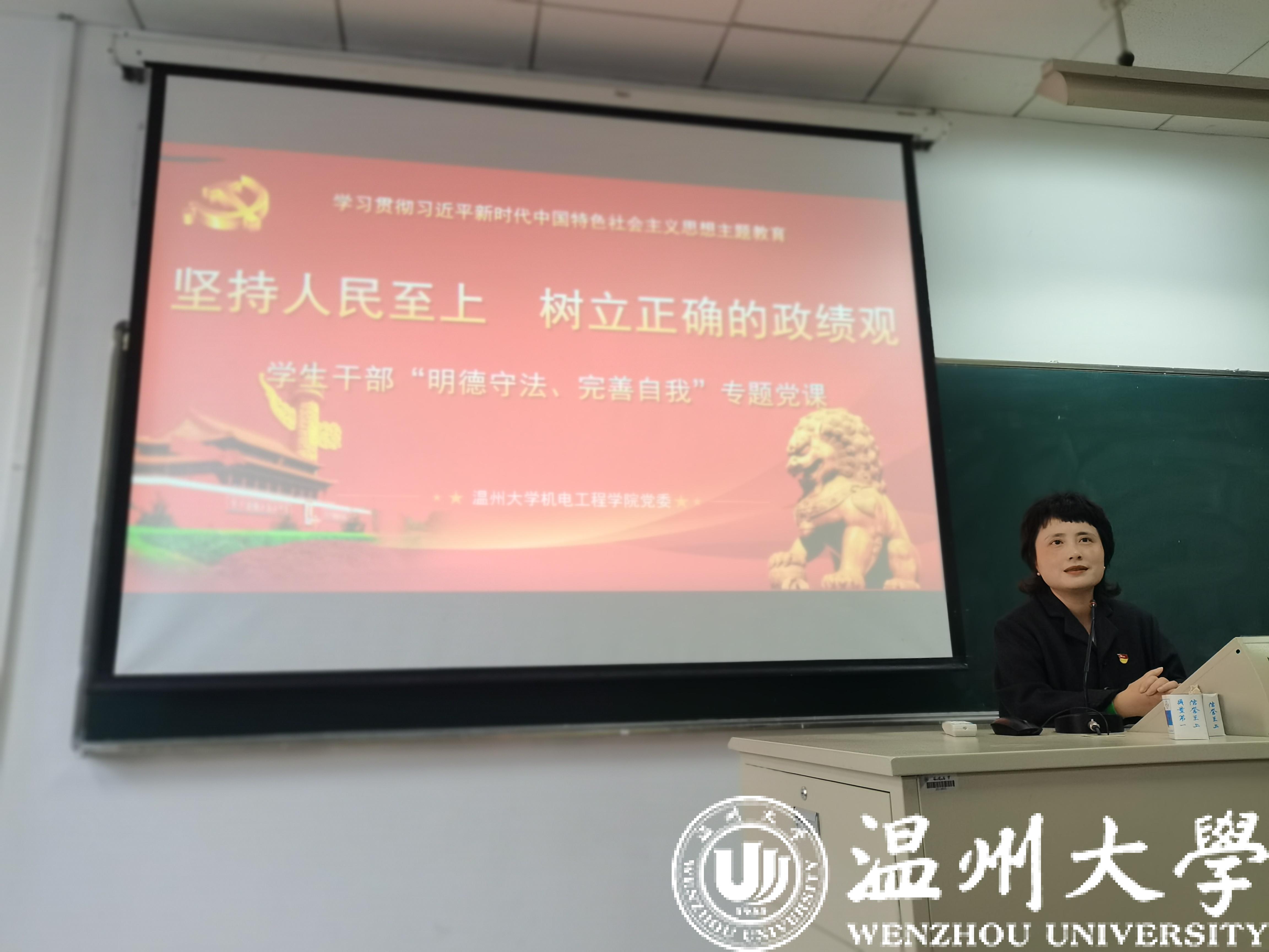 在388vip太阳集团学院路校区,黄玮副书记开讲专题党课《坚持人民至上 树立正确的政绩观》。她结合案例,强调学生党员干部要以身作则,严于律己,树立正确的政绩观,时刻以高标准,严要求,规范自己的言行举止,做到真真切切为同学服务,为人民服务。