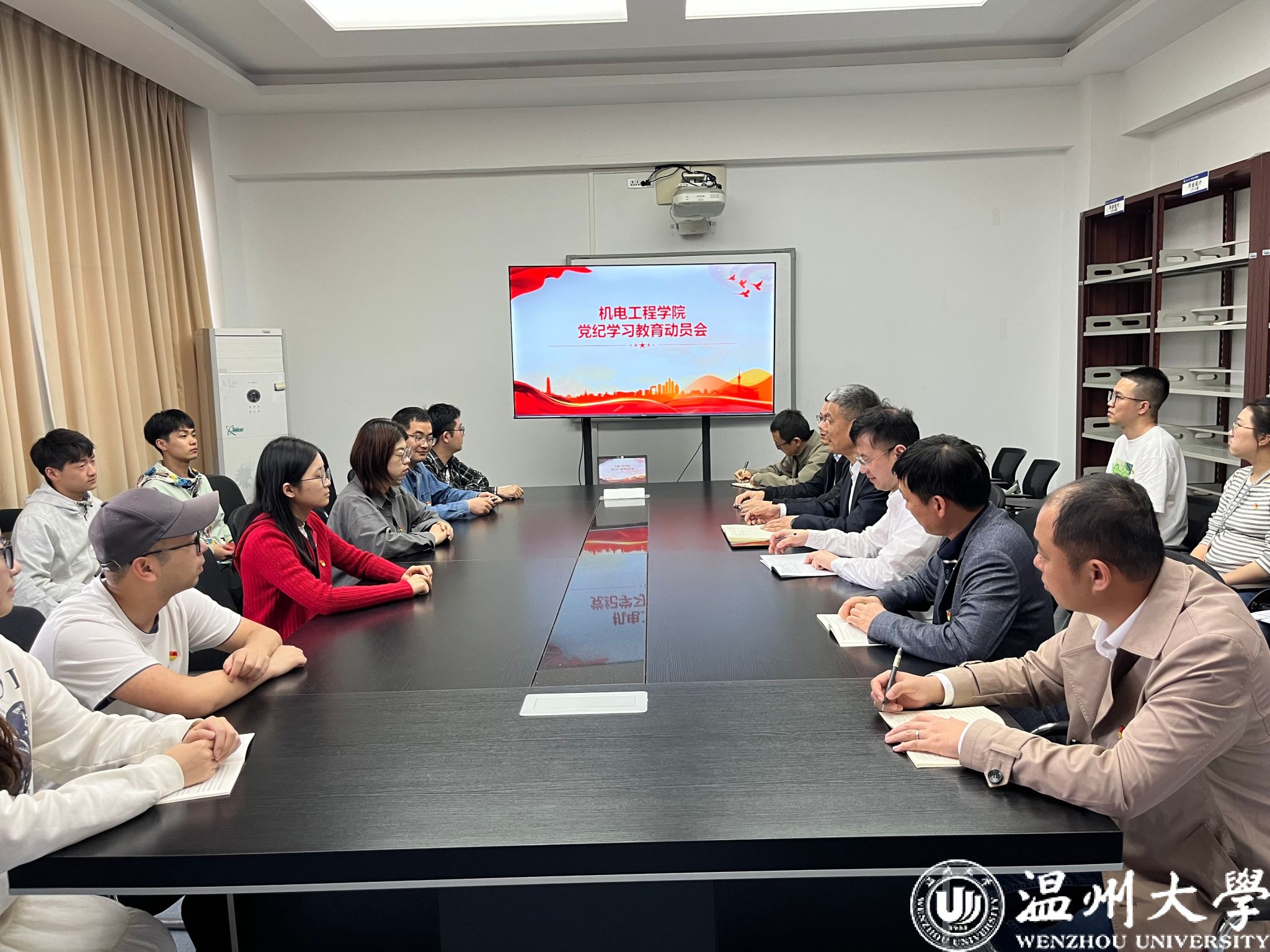 4月17日下午,机电工程学院党委在院楼6C301召开党纪学习教育部署会,传达部署党纪学习教育相关工作。会议由周荣书记主持,学院党委委员、领导班子、师生党支部书记参会。