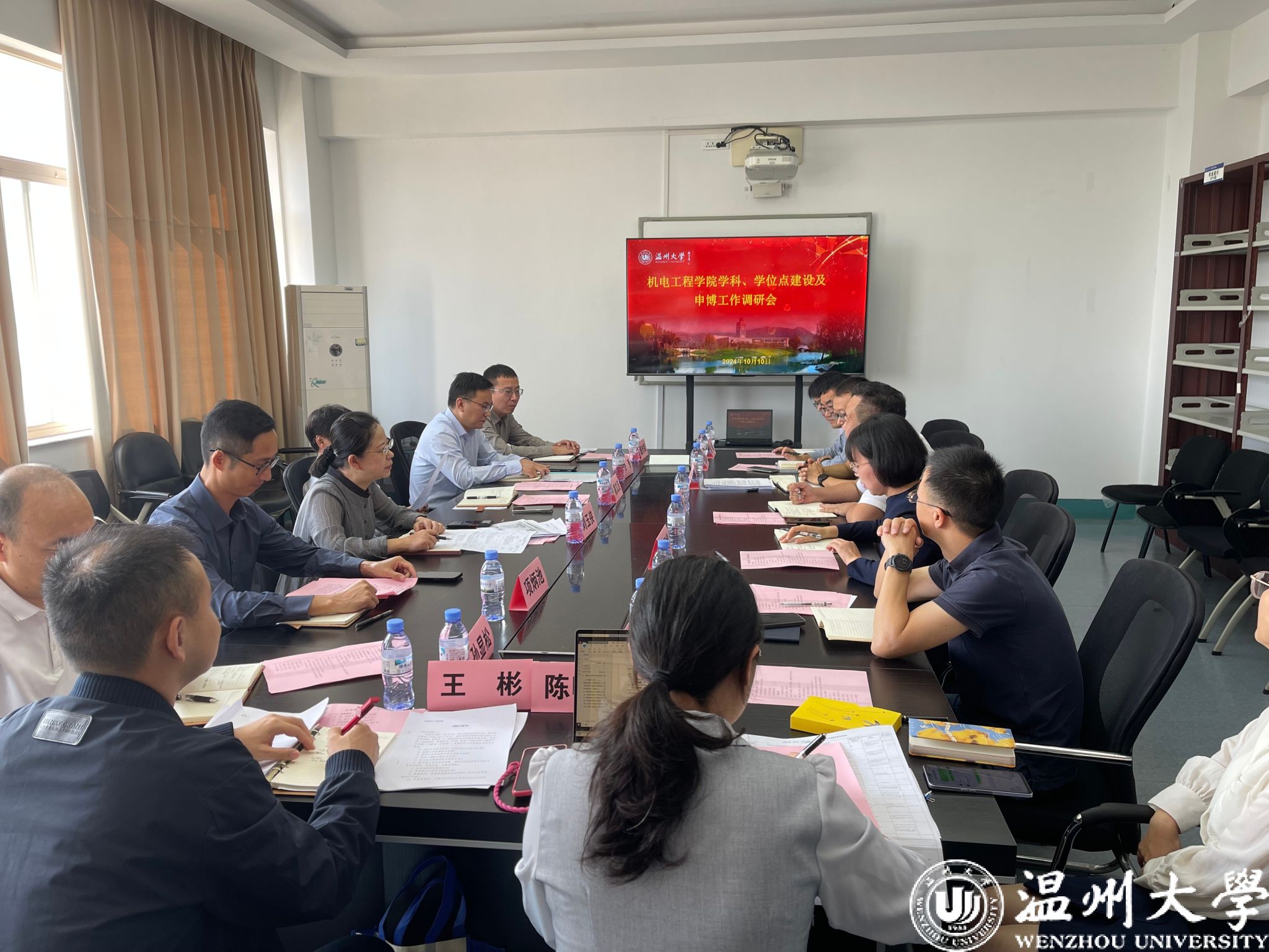 2024年10月10日,388vip太阳集团党委委员、副校长刘玉侠一行带队调研指导。研工部部长、研究生院副院长黄文浩,研究生院副院长李勇、党校办副主任项炳池、计财处副处长孙显松、学科建设与学术交流中心副主任戴传军等相关负责人,机电工程学院院长向家伟、副院长朱德华以及教师代参加。会议由学院党委书记易招娣主持。