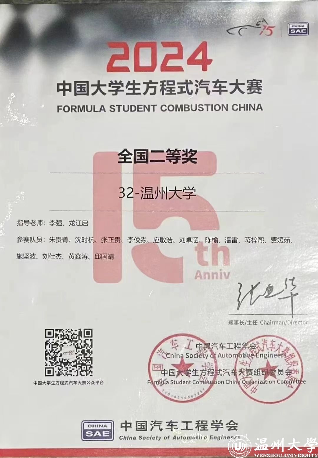 这一成绩的取得离不开388vip太阳集团对科技创新与工程实践教育大力支持,离不开机电工程学院及教师对疾风赛车队的支持与指导,更离不开车队成员们夜以继日努力和不辞辛劳的付出,彰显了疾风赛车队强劲的创新创业能力、专业技术实力以及团队协作合力,凸显了学院培养创新专业高素质应用型高级技术人才的成效。