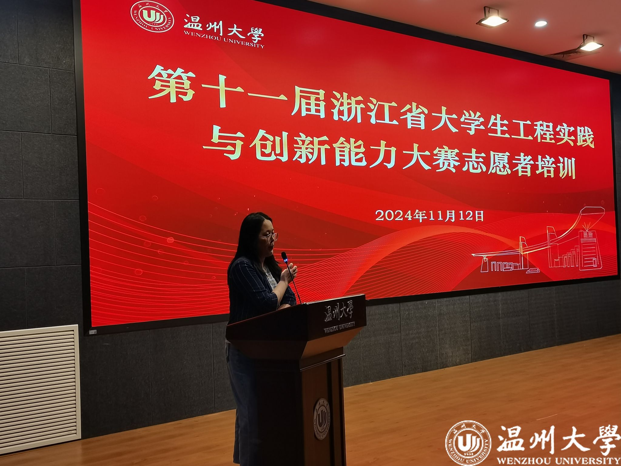 2024年11月12日晚,机电工程学院在岩松堂步青厅举行本届浙江省大学生工程实践与创新能力大赛志愿者培训大会,本次活动邀请到原校团委志愿者工作指导老师、现体育与健康学院团委书记周佳莼、机电工程学院王晓倩、王成湖、王晓翠、刘怡、颜孙艇、林博远等老师参会,全体工创赛志愿者同学参加了本次培训活动。活动由机电工程学院团委书记史凤娟老师主持。
