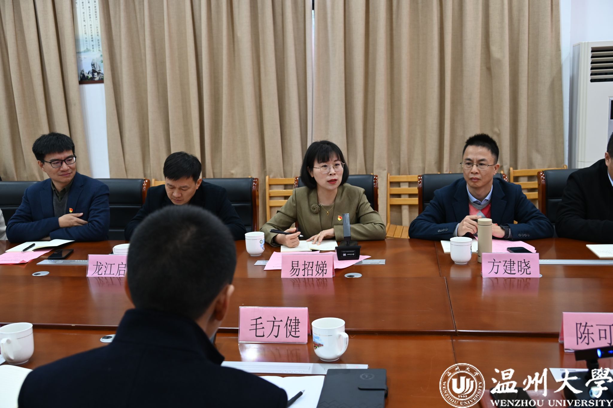 在交流环节,泰顺县人民政府办公室副主任毛方健、泰顺县职业教育中心党总支书记林盛祝分别对泰顺县和泰顺县职业教育中心的党建与专业建设情况做了讲解。机电工程学院易招娣书记就泰顺县职业教育中心“3+2+2”办学、汽修专业申报建设、汽修实训中心建设等给出了指导性建议,并就师资、专业课程体系、培训实习等双方可能开展的合作方向进行了简要梳理。