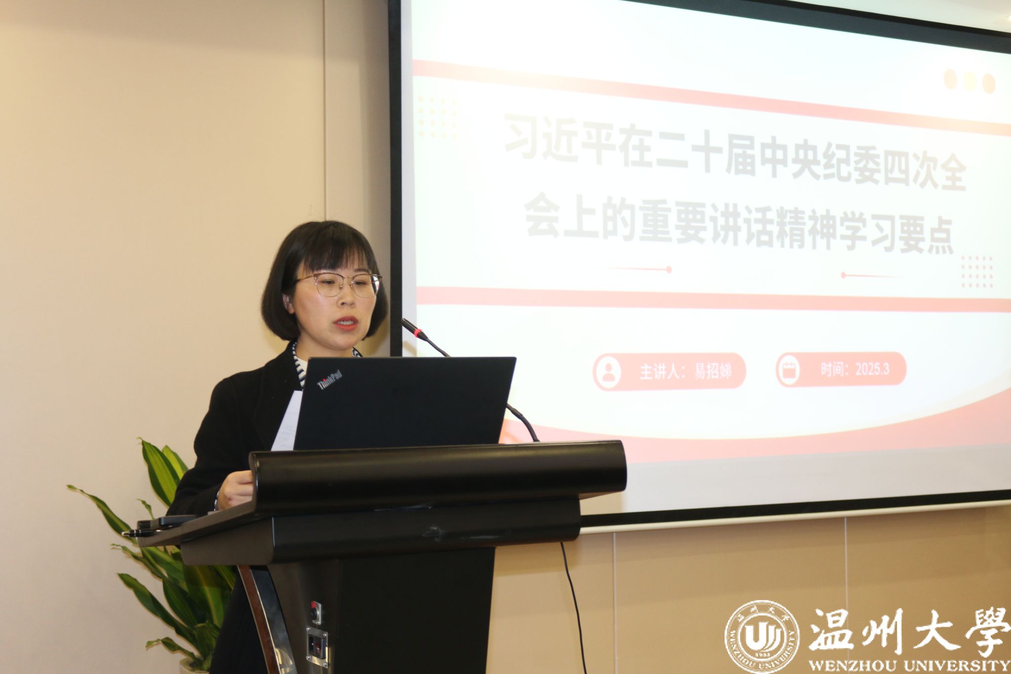 易招娣书记作《学习习近平在二十届中央纪委四次全会上发表重要讲话精神》专题辅导,并结合学院发展实际,作总结讲话。她强调,新学期要坚持目标为导向,紧扣工作重点,高质量、高标准落实发展举措,推动工作落地见效;要强化人才驱动,发挥优秀人才和先锋模范核心和带头作用,形成示范效应,带动全院师生奋勇向前;要坚持党建与业务融合发展,注重工作相互的衔接和融合,推动从“物理叠加”向“化学转变”,全力以赴将党建业务做优、做特、做强,推动机电工程学院在新学期实现高质量发展。