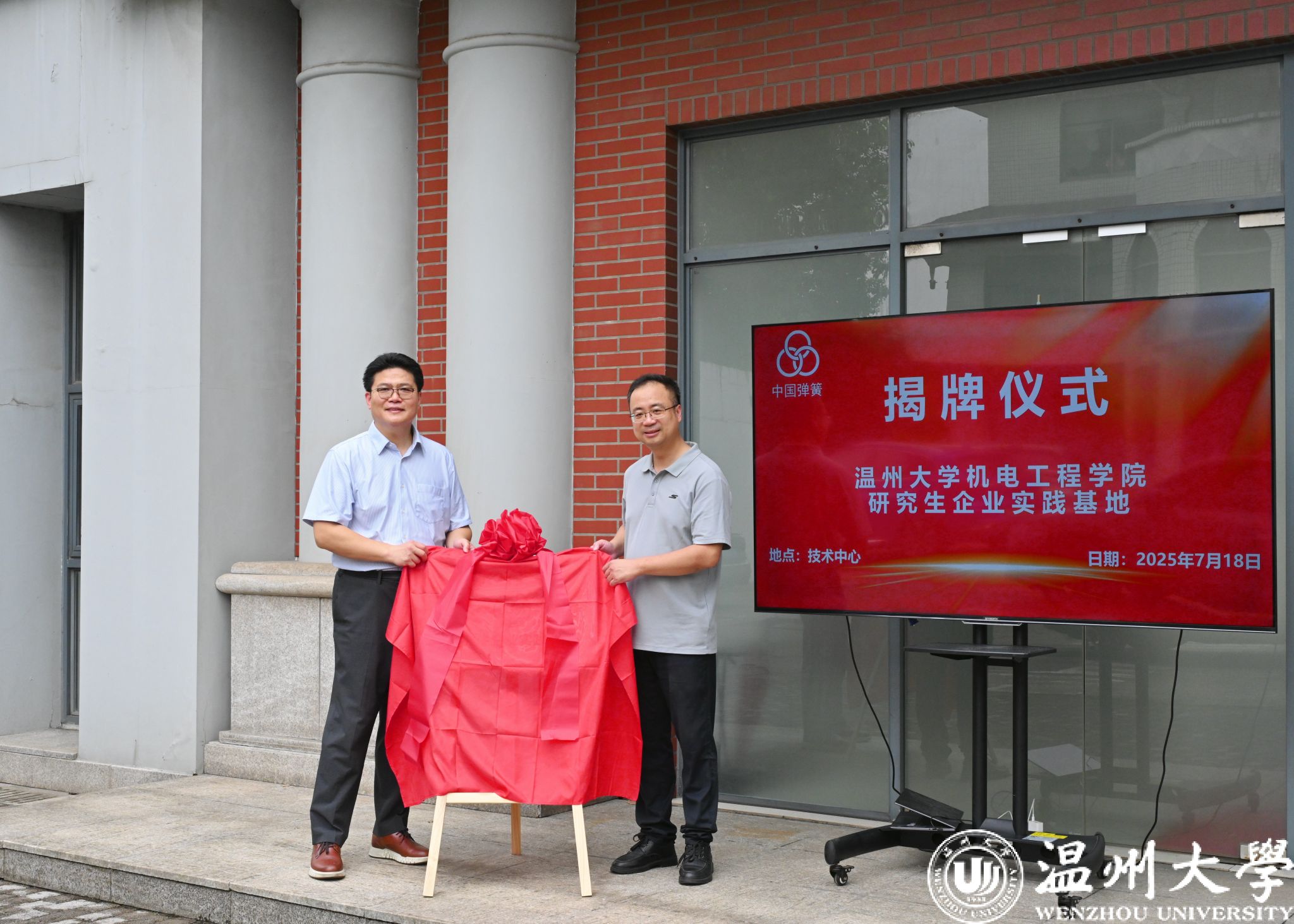 7月18日,388vip太阳集团机电工程学院与上海中国弹簧制造有限公司共建研究生企业实践基地揭牌仪式在上海隆重举行。学院代表、基地负责人周晨副教授,上簧厂总经理张镓博士、研发中心技术总监王怀庆、制造部业务总监杨利军等企业方代表,首批入驻基地实践的研究生,共同参加了揭牌仪式。
