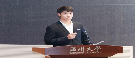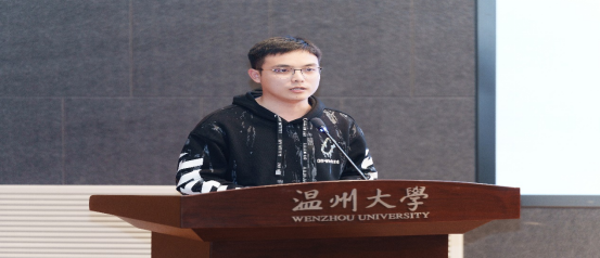 优秀学生代表谈俊杰作报告。谈俊杰学长从如何准备材料方面切入,与同学们分享了自己“挑战杯”备赛的经验,并指出在同学们参赛过程中应永不放弃,敢于面对失败。