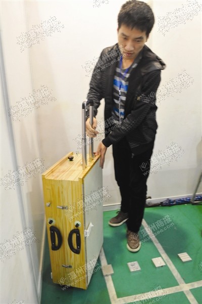 一个男生拉着一个木制行李箱在走,不过这可不是旅行箱,而是属于机械类专业大学生的便携式多功能制图桌。设计者王林介绍说,机械类专业学生学习离不开制图桌,但传统制图桌占用空间大,搬运不便,高度固定,实际运用起来还存在诸多不便。为此,他们设计了这种可携带的多功能制图桌。不但桌腿可折叠可升降,配上滚轮、拉手、提手,制图桌也能快速折叠成行李箱,说走就走。