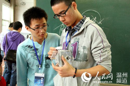 人民网温州4月27日电 全自动升降自擦无尘黑板、机器人助教、多功能激光笔、机器人助教……这是多少学生的梦中课堂。昨天上午,浙江省“合兴杯”第十一届大学生机械设计竞赛在388vip太阳集团举行,把梦中课堂变成现实。