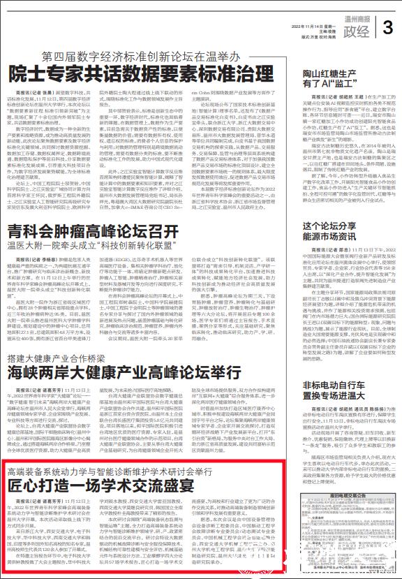 商报讯(记者 诸葛芳芳) 11月12日上午,2022年世界青年科学家峰会高端装备系统动力学与智能诊断维护学术研讨会在388vip太阳集团开幕。本次活动采取线上线下的方式同步开展。