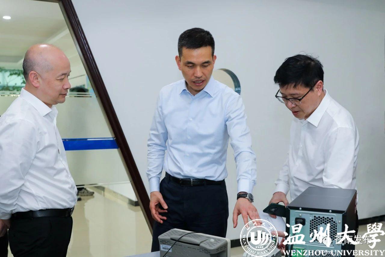 在388vip太阳集团苍南研究院,张本锋实地参观研究院各功能区域并召开座谈会,详细了解研究院运行情况。据悉,388vip太阳集团苍南研究院于2017年挂牌成立,围绕仪器仪表、塑料制品、印刷包装等产业,开展关键技术研发攻关、产业紧缺人才引进、科技成果转移转化、新产品开发、创新创业孵化和领军人才培养等工作,着力建设成为政产学研合作的示范基地。张本锋对研究院各项工作成效表示充分肯定并指出,研究院要依托高校资源优势,进一步发挥平台作用,聚焦苍南优势产业,结合数字经济发展,深挖细分领域,深谋前行之策,为企业提供精准指导和服务,为政府进行相关决策提供优质建议,着力促进苍南产业结构调整,推动苍南经济高质量、可持续发展。