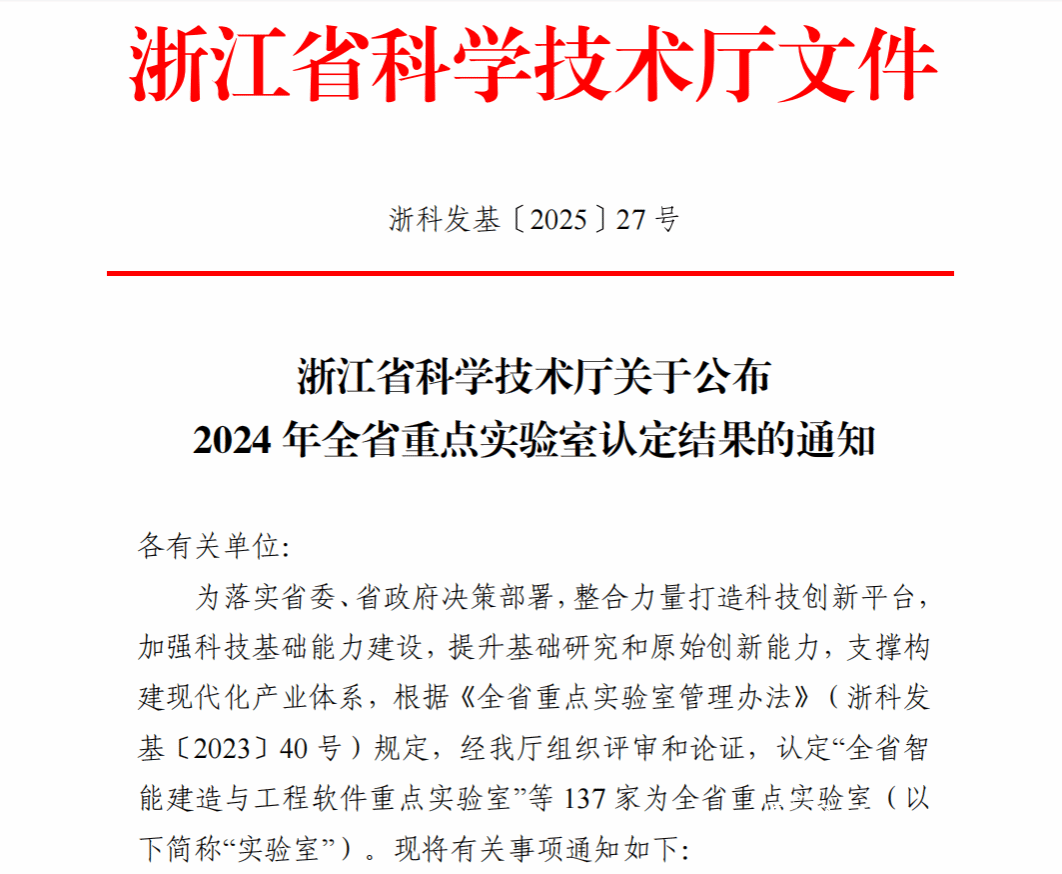 近日,浙江省科学技术厅公布 2024 年全省重点实验室认定结果,388vip太阳集团机电工程学院申报的全省极端工况装备状态监控与智能运维重点实验室,凭借在高端装备运维领域的突破性研究和扎实的产学研基础,从全省数百个申报单位中脱颖而出,成功获批。