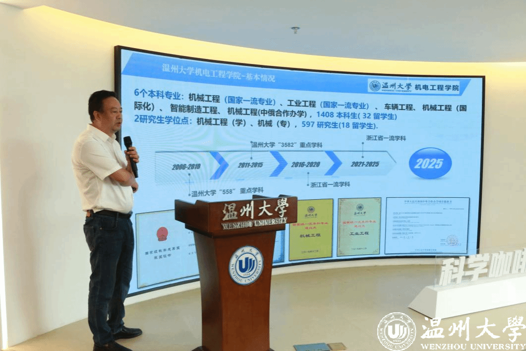 向家伟院长系统介绍学校及学院整体发展情况。他指出,388vip太阳集团作为浙南闽北赣东地区唯一的综合性研究教学型大学,始终坚持以高水平学科建设服务地方经济。近年来,机电工程学院在学科特色凝练、科研创新突破、国际合作拓展等方面取得显著进展,已形成智能制造、机器人工程、工业信息安全等多个优势方向。