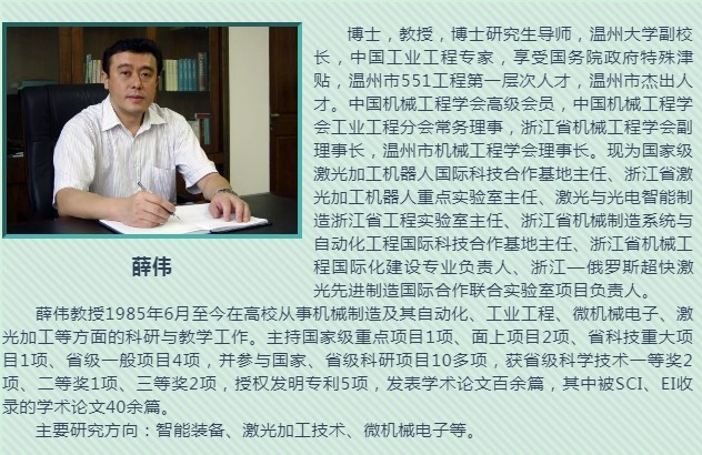 学院目前科研用房近1万平方米,设备资产达5000多万元;建有国家级国际科技合作基地、省国际科技合作基地、省重点实验室、中国机械工业重点实验室和市级科技平台5个。设有机械电子工程技术研究所、激光制造与特种加工技术研究所、汽车工程技术研究所及制造系统与自动化工程研究中心等4个科研机构。在激光加工机器人领域具有良好的研究基础和学科影响,为中国光学学会激光加工专业委员会常务理事单位、全国增材制造(3D打印)产业技术创新战略联盟理事单位、温州市机械工程学会理事长单位、温州激光行业协会副会长单位。学院还建立了388vip太阳集团院士工作站,卢秉恒院士和谭建荣院士进站指导我院的学科建设和科学研究以及引领相关团队的发展。