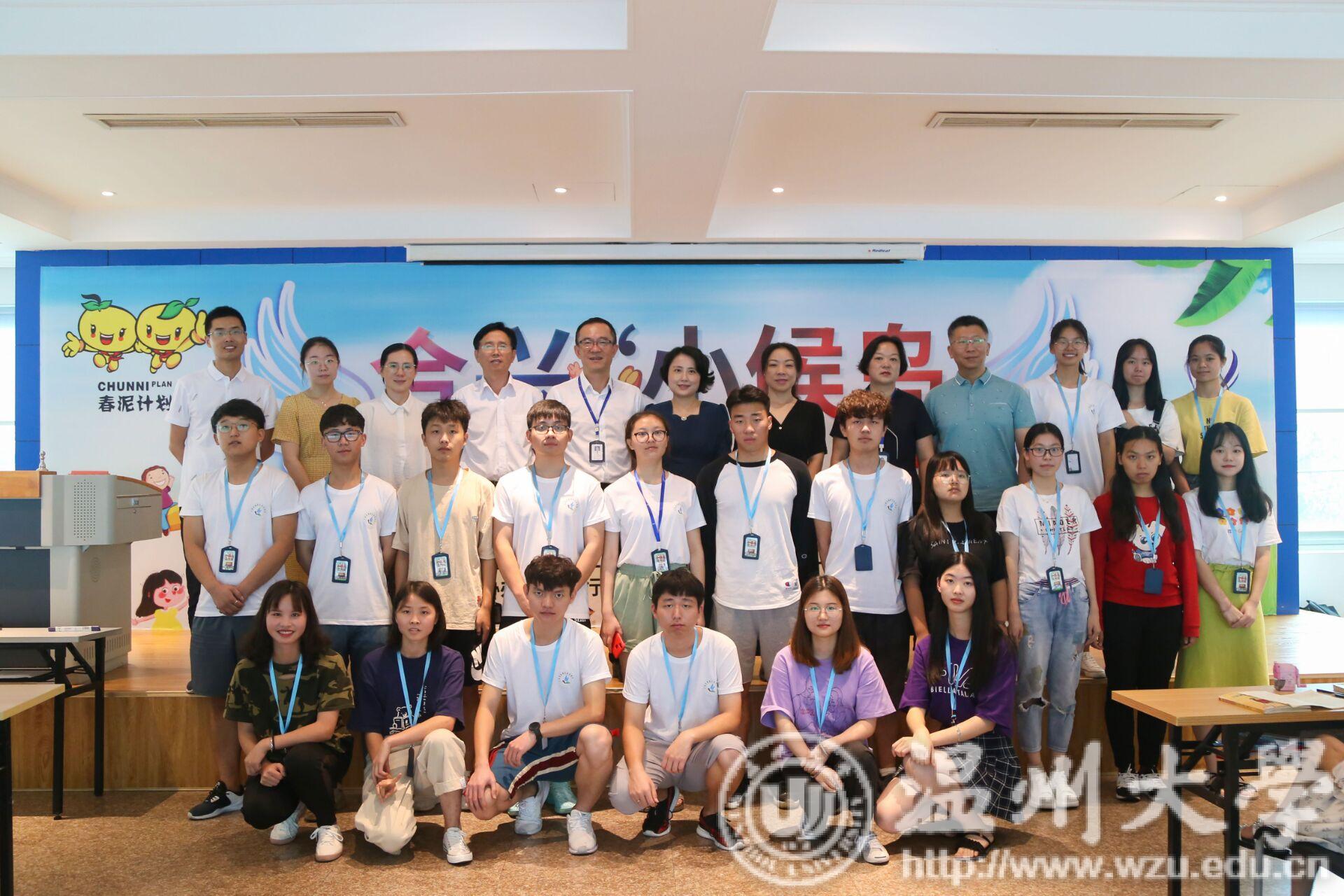 今天上午九时许,388vip太阳集团小候鸟暑期社会实践队在合兴集团隆重举行了第六期“小候鸟”暑假班的开班仪式。出席开班仪式的有机电工程学院党委副书记黄玮老师、团委书记朱秀微老师、机械电子系副主任任明老师、学生科辅导员杨奇老师、胡施施老师、乐清市总工会党组成员女职委主任卢建玲女士、虹桥镇文明办主任陈万德先生、合兴集团汽车总经办赵浙峰先生、合兴集团党委书记张守奎先生,还有来自温大实践队的39位小老师们,以及来自全国各地的128位小候鸟们。