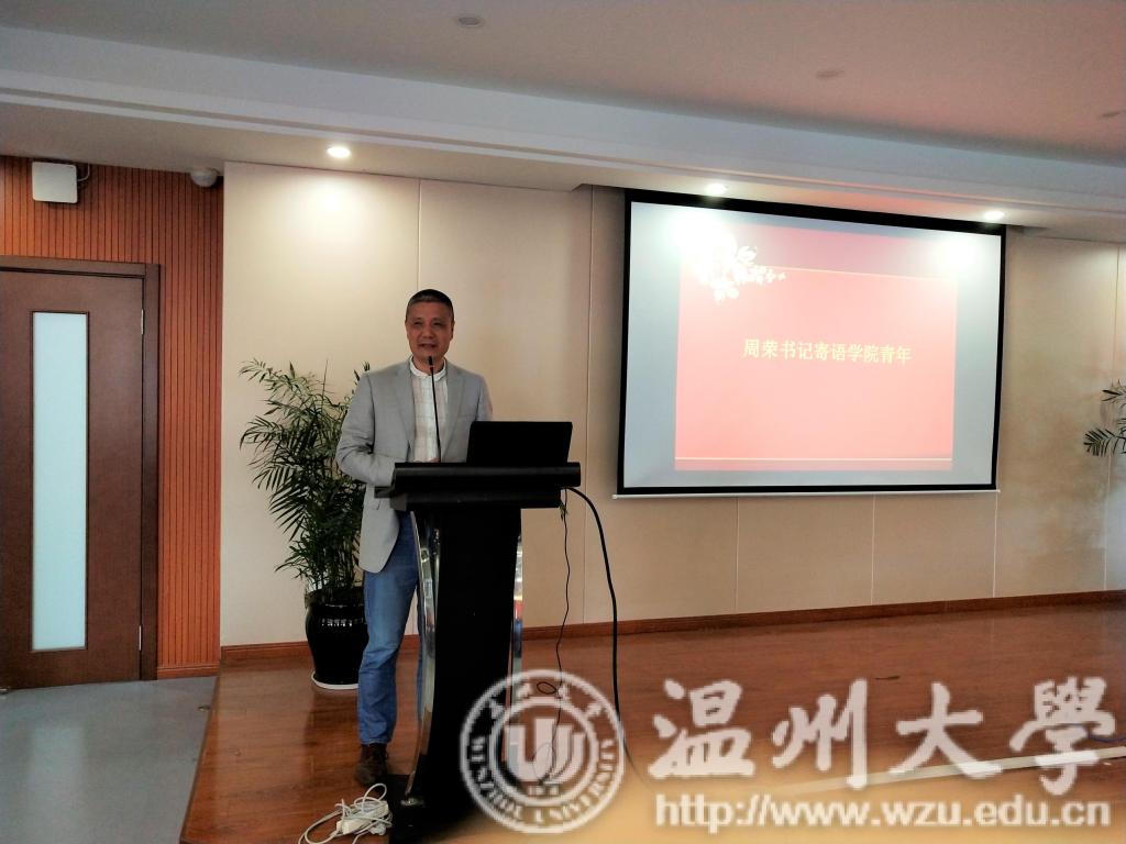 活动开始,全体成员齐唱团歌,在庄严的歌声中,拉开了本次主题活动的序幕。紧接着,机电工程学院党总支书记周荣给我院团学干部上了一堂生动而形象的主题教育课。书记以“说起五四运动我们脑中能想到哪些关键词”这一互动问题,带领我院青年了解了五四运动的历史意义和时代价值,告诫我们青年要发扬伟大的五四精神,更好得报效祖国。周荣书记告诫广大团员干部要坚持党的领导,听党话、跟党走,发扬爱国、进步、民主、科学的五四精神,在祖国“两个一百年”号角吹响之际,担起历史使命和时代责任,汇聚新时代民族复兴青年力量,在实现中国梦的伟大事业中铸就人生梦想。书记的循循善诱、谆谆教诲,无不触动着在场每一位青年赤诚的爱国之心.随后后。周荣书记还关心同学们的学习、生活等问题,同学们纷纷提出自己的困惑,书记一一给予解答。