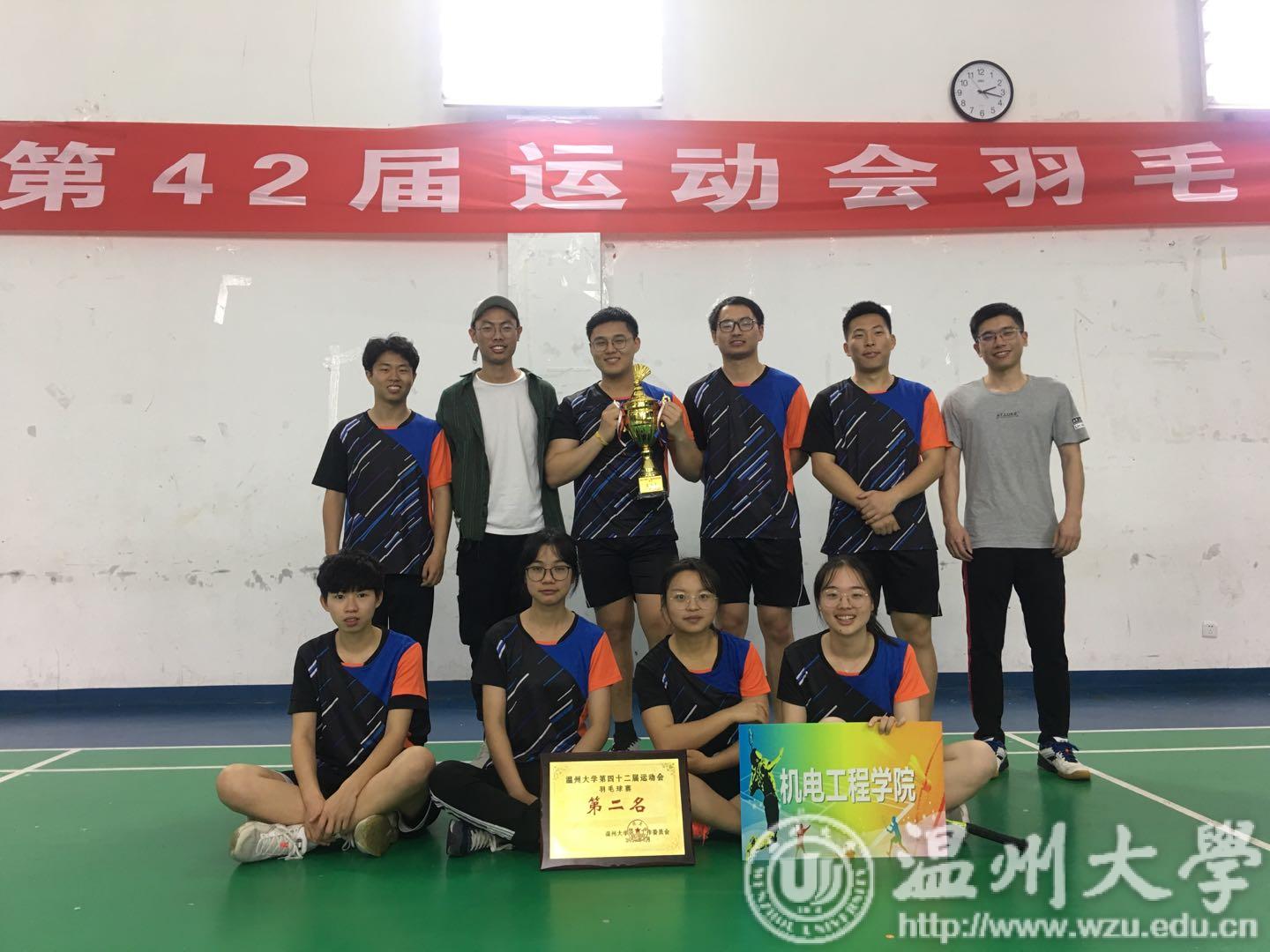 2019年4月20日,388vip太阳集团第四十二届运动会羽毛球赛在南校羽毛球馆拉开了帷幕。由388vip太阳集团体育工作委员会主办的的本次羽毛球赛为期两天。比赛分为趣味团体项目(颠球接力)和混合团体(男单,女单,男双,女双,混双)。混合团体分为预赛、半决赛和决赛三轮比拼。机电工程学院十名同学组成的参赛队员参与了这次比赛,并取得了团体亚军的优异成绩。