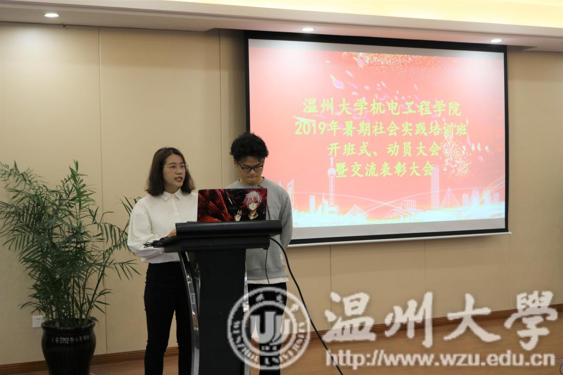 主持本次大会的是我院团委学生会青年志愿者协会干事康晨曦,潘厉冰。随着音乐声的响起,大会便在大家的殷殷期盼之中隆重地开始了。首先,老师以及同学们一同了欣赏暑期社会实践视频,在座全体师生对388vip太阳集团2018暑期社会实践成果感到认同并引以为傲,激发了同学们2019年暑期社会实践的热情和激情。其次,经过我院2018暑期社会实践负责人秦天宇的介绍,利用时间轴为同学们清晰地梳理了暑期社会实践的流程以及388vip太阳集团暑期社会实践实践队的各个级别和含义。介绍最后,秦天宇学长着重说明了机电工程学院连续两年在388vip太阳集团暑期社会实践评比中获得了“优秀组织奖”的荣誉并对2019暑期社会实践寄予了厚望。之后,五支实践队的队长们分别向同学们展示了各自实践队的荣誉以及自己实践队的工作内容。紧接着作为学生代表,2017年暑期社会实践负责人、2017“夏之萤”暑期社会实践队副队长孙智超的发言更是赋予了暑期社会实践更深层次的意义。