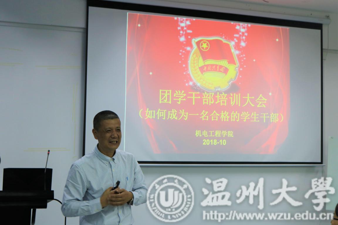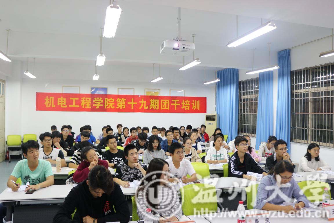 2018年10月26日18:30,机电工程学院团委·学生会第十九期团干培训开班典礼暨第一讲——如何做一个合格的学生干部于机电工程学院B201举办。周荣书记主讲,团委学生会全体成员参加了此次开班典礼。